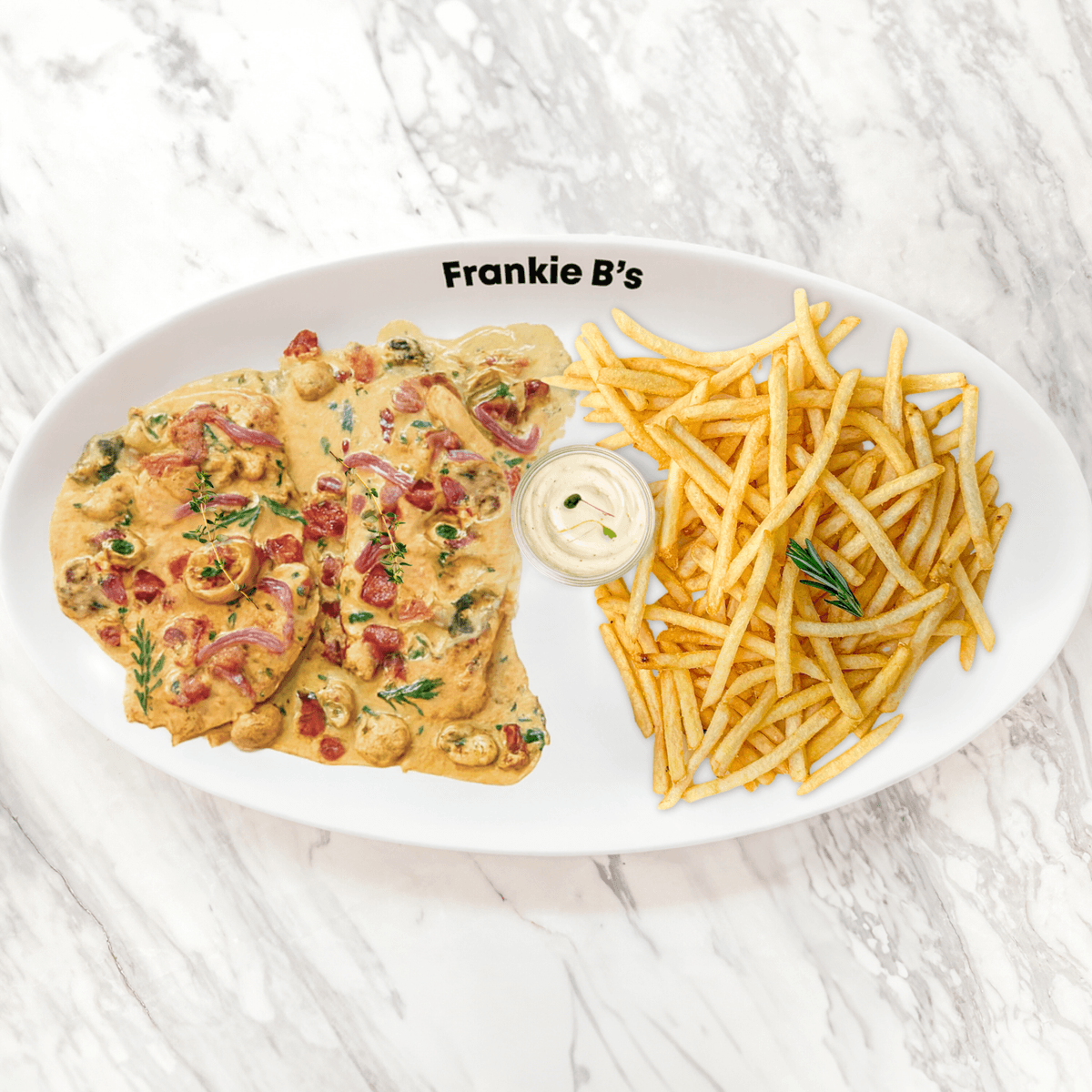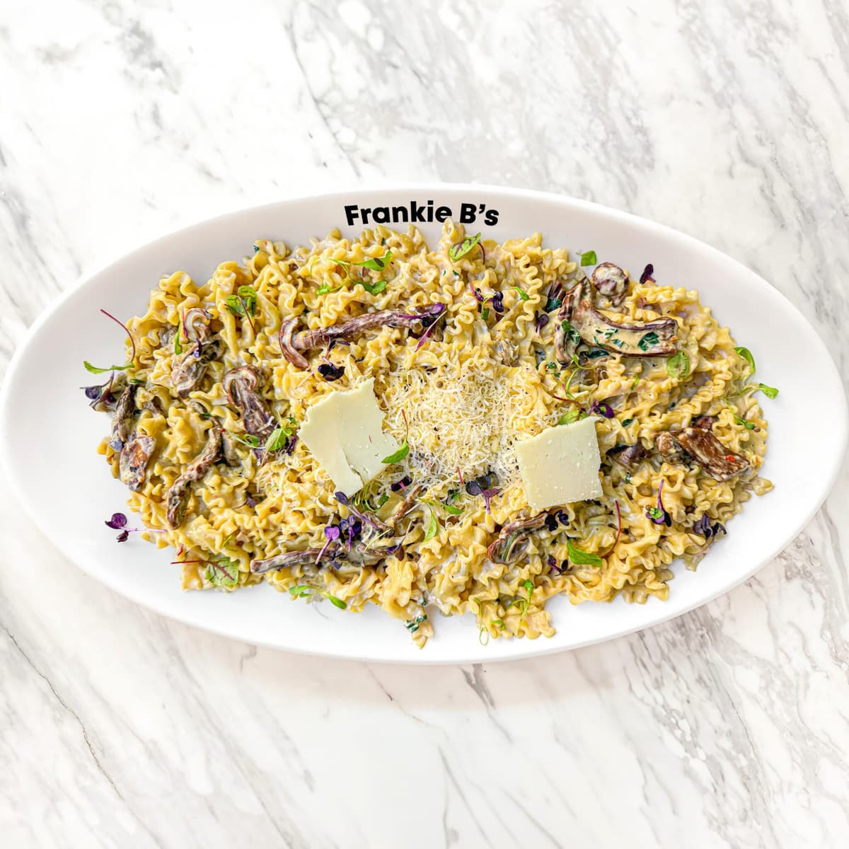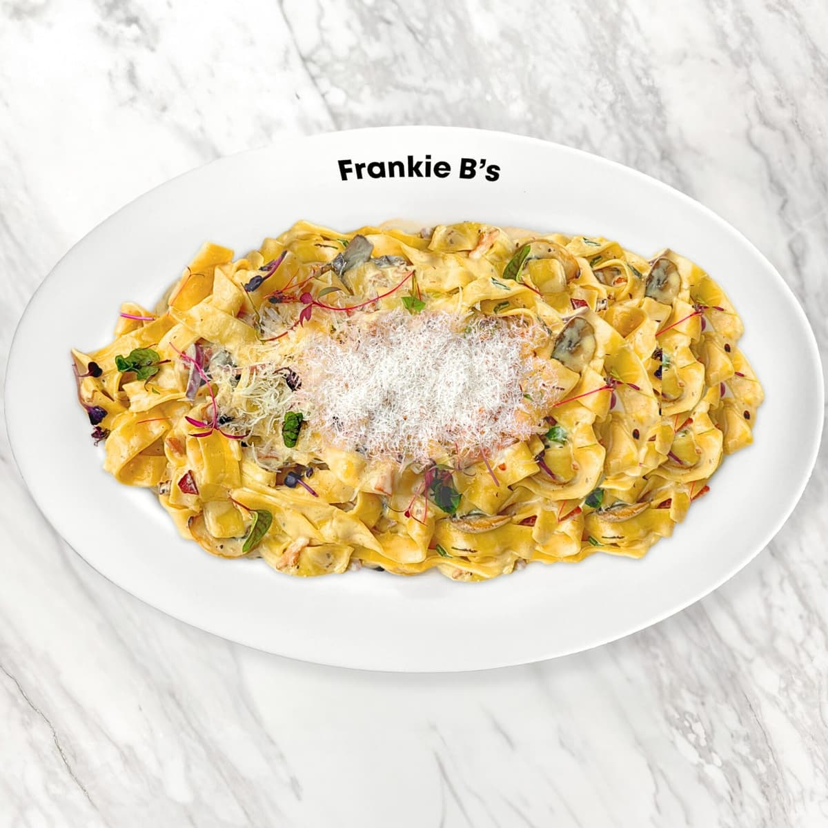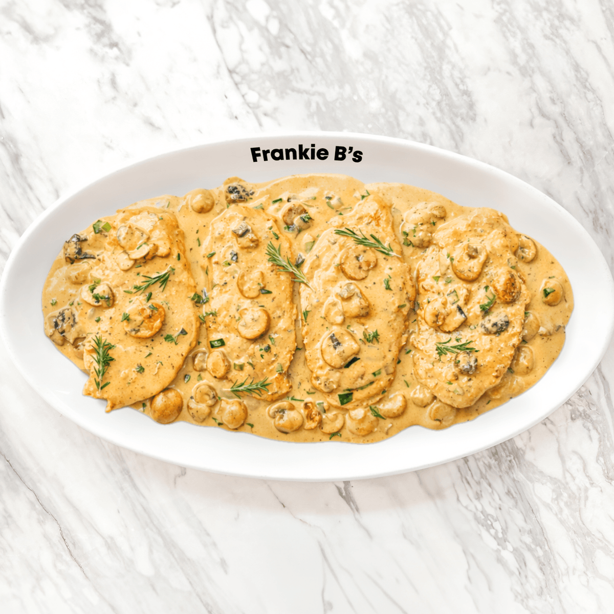 chicken, garlic, mushroom, gorgonzola, parmesan butter cream, parsley, grated parmesan