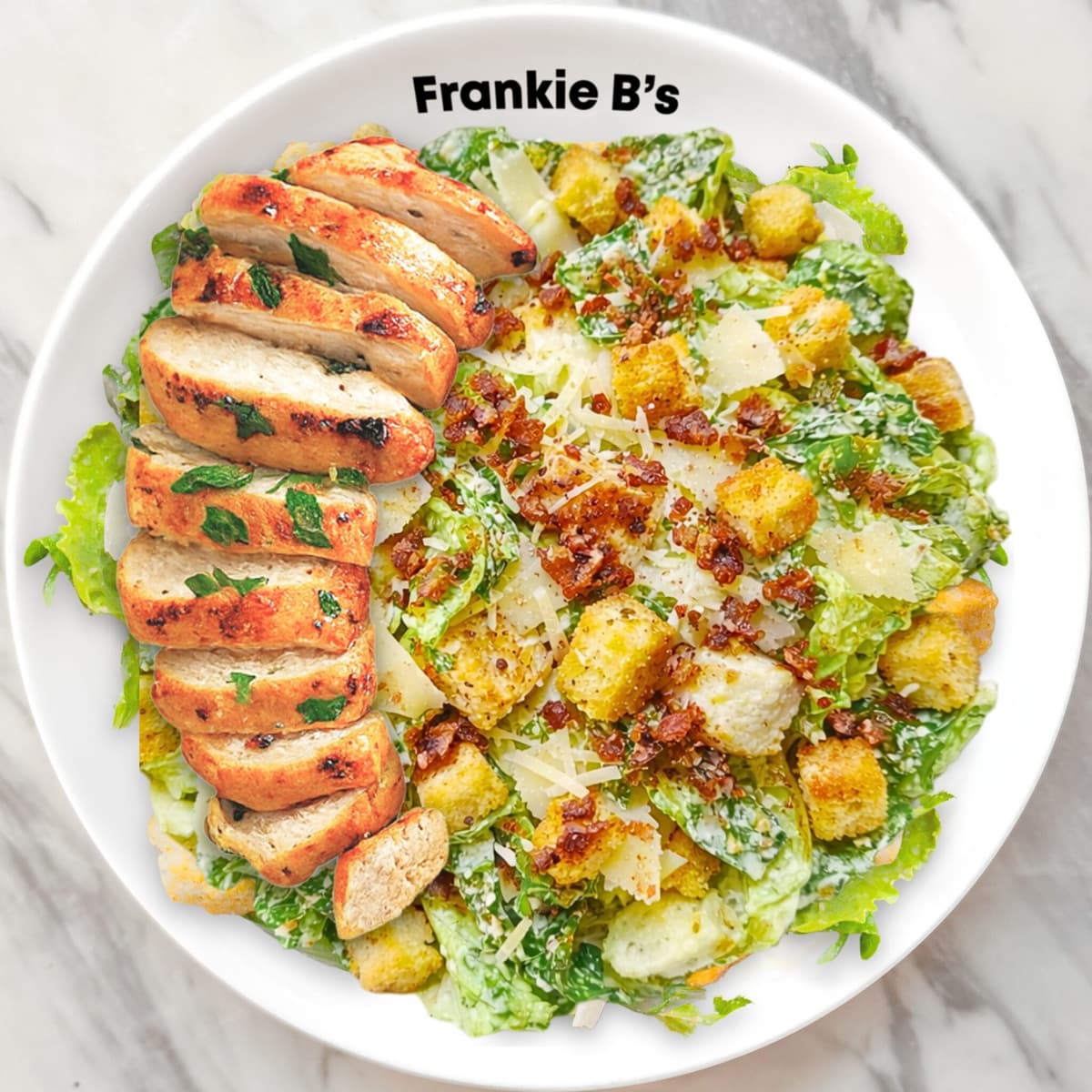 choice of chicken, pancetta, croutons, herb pangrattato, pork crackling, parmesan