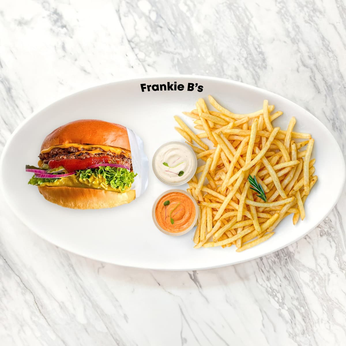 wagyu patty, cheddar, ketchup, mustard, pickles, lettuce, red onion, side of your choice