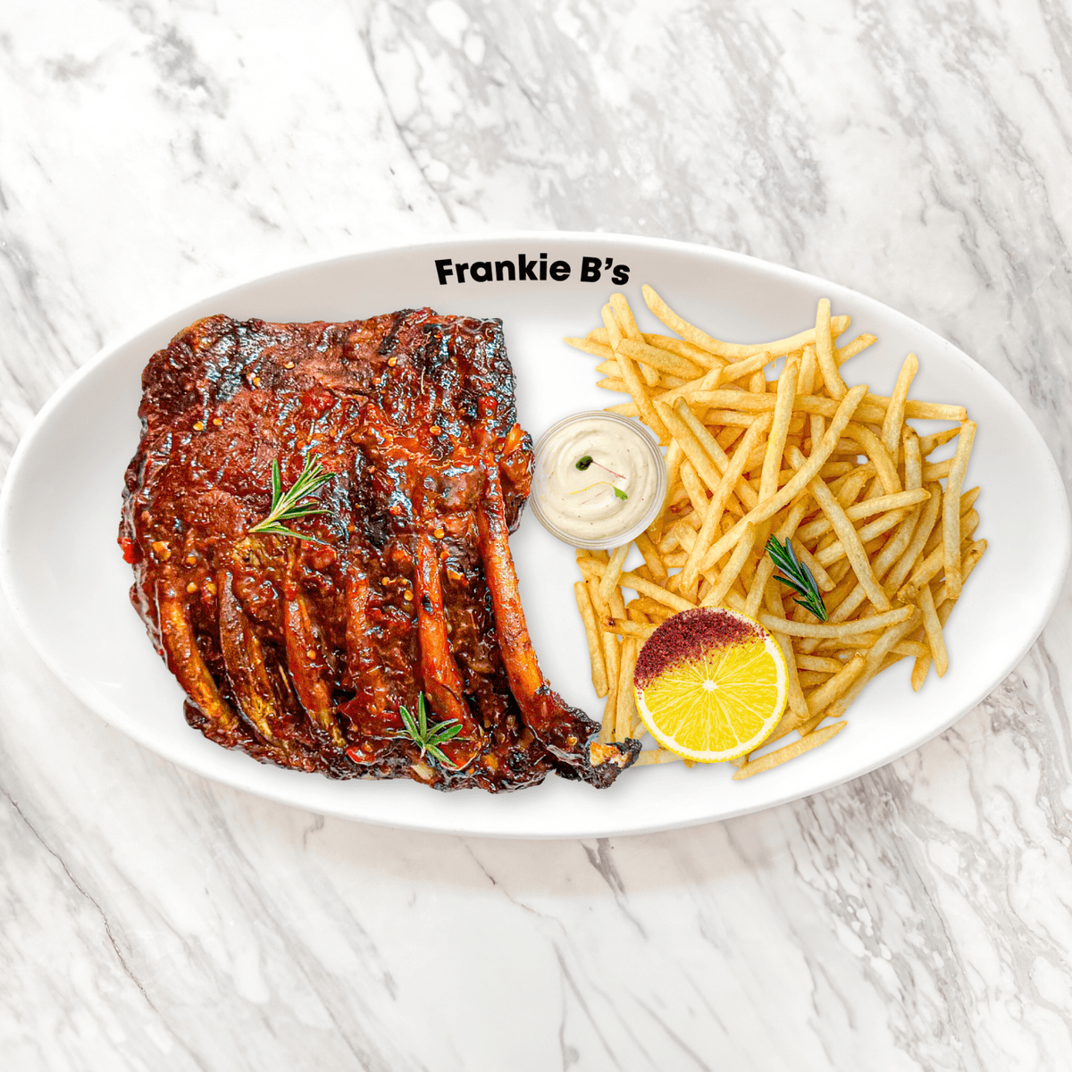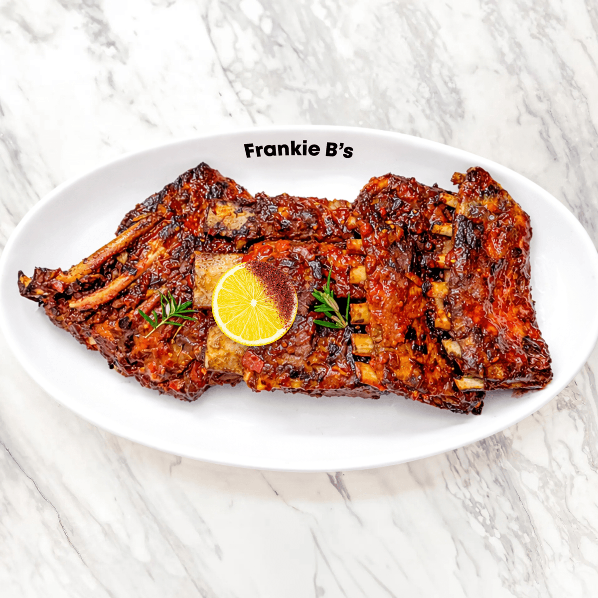 barbecued ribs, choice of basting, side of your choice, sumac lemon