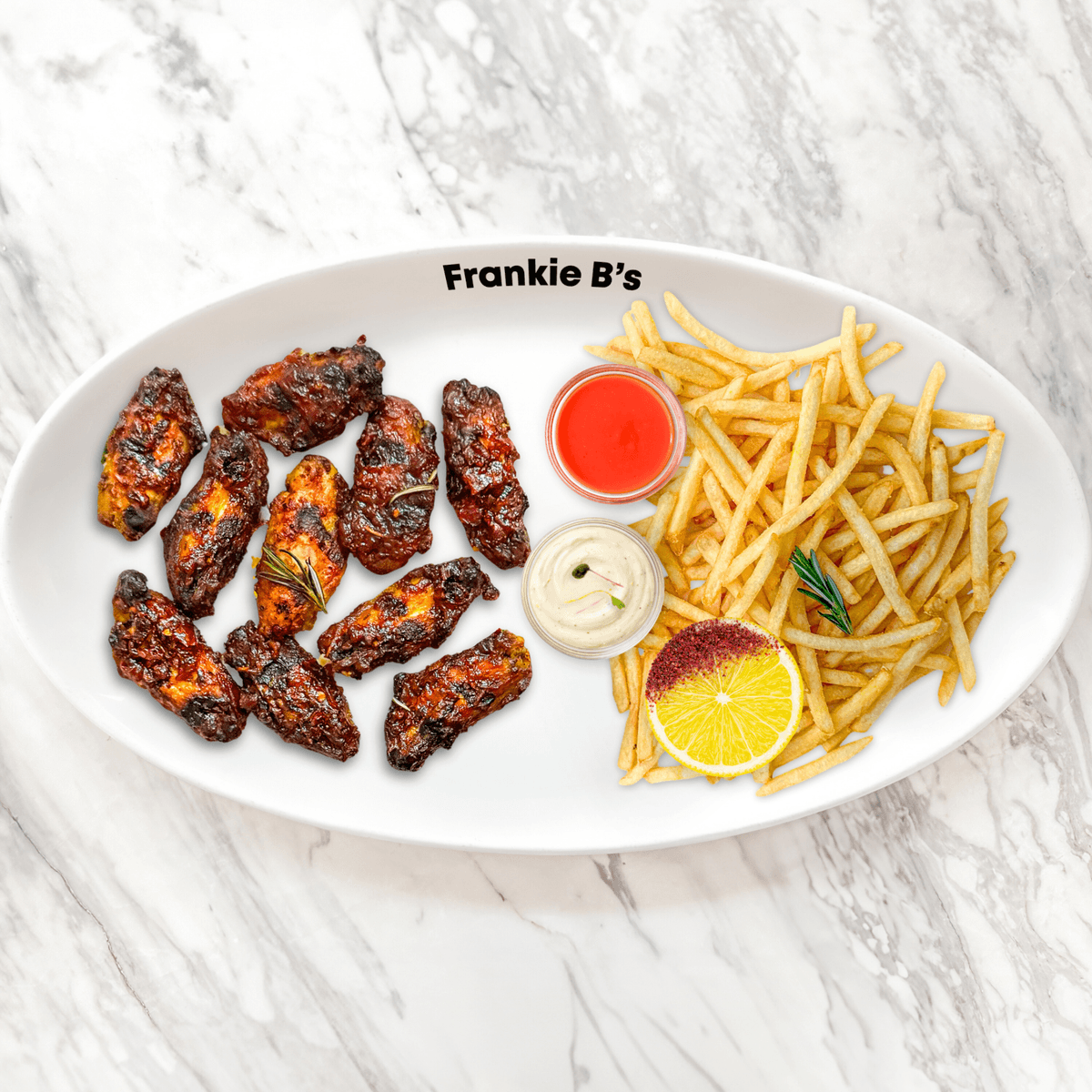 barbecued wings, choice of basting, side of your choice, sumac lemon