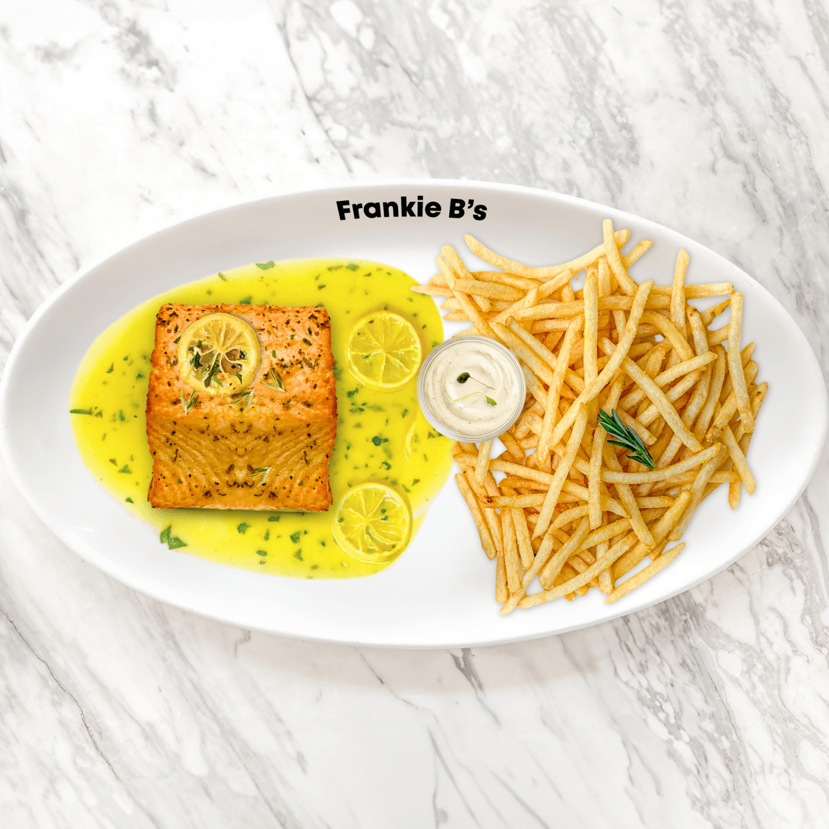 choice of fish, choice of sugo, side of your choice