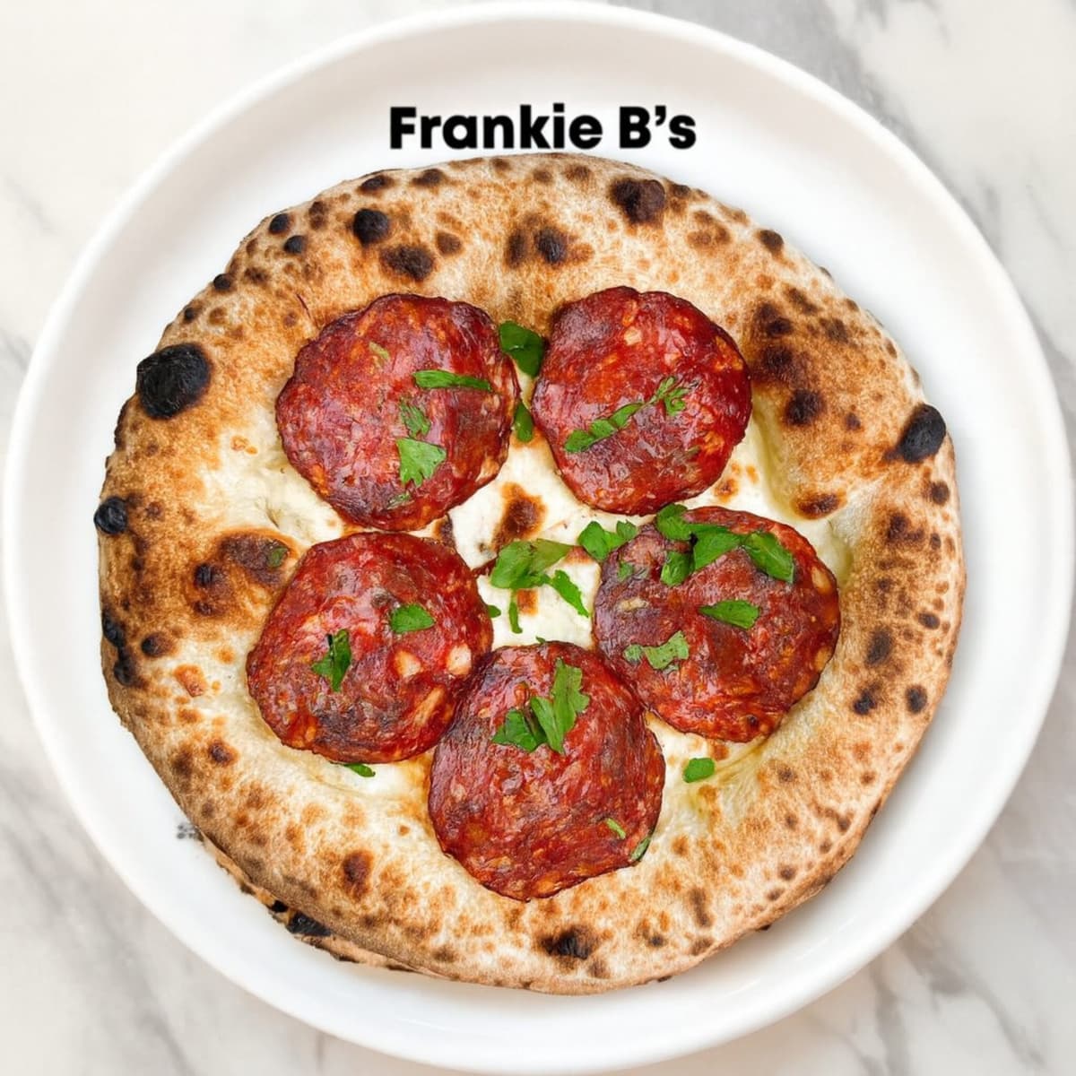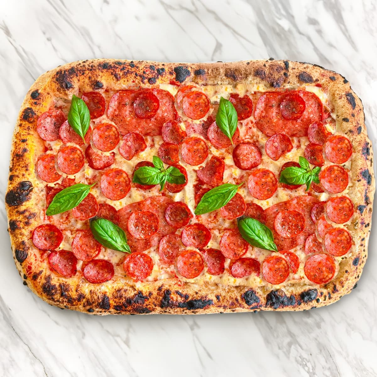 pomodoro base, mozzarella, salami, oregano, basil
