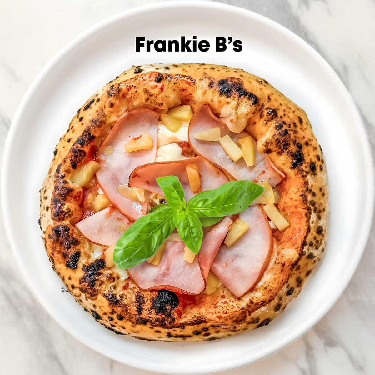 pomodoro base, mozzarella, ham, pineapple