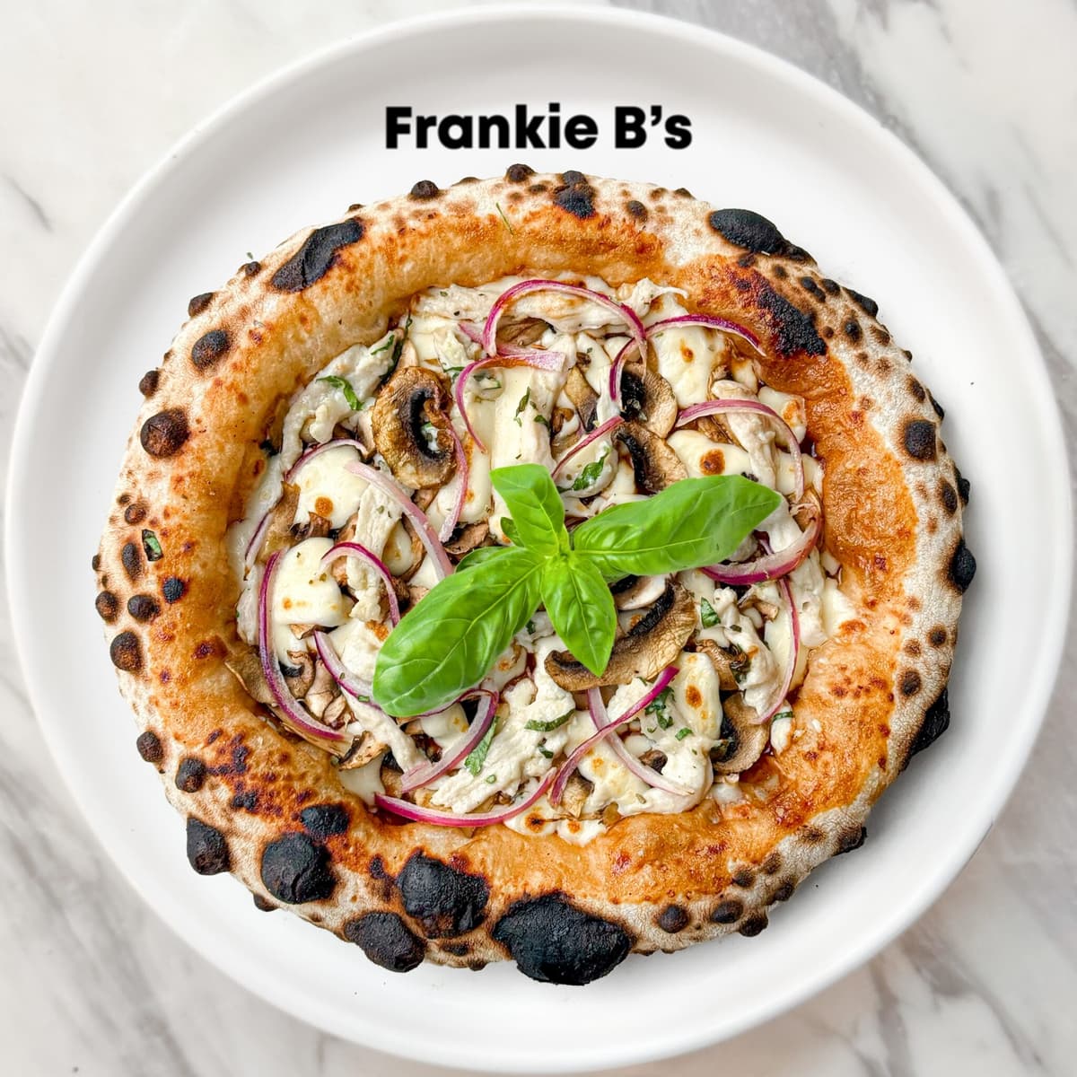 barbecue sauce, mozzarella, chicken, mushroom,